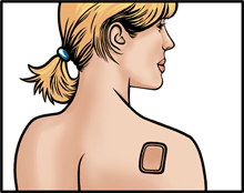 Le patch est un timbre qui se colle sur la peau et qui contient une association similaire à celle d'une pilule combinée. Les deux hormones; estradiol et progestatif, qui pénètrent dans le sang à travers la peau.
